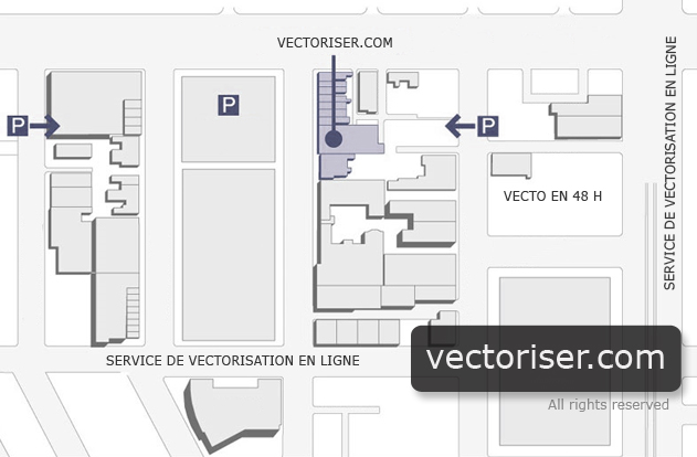L'intérêt de vectoriser vos plans d'accès est la certitude d'obtenir par la suite des impressions propres sans pixelisation. Les noms des rues, des bâtiments ou autres éléments graphiques de vos plans gagnent en lisibilité quelle que soit la taille d'impression.